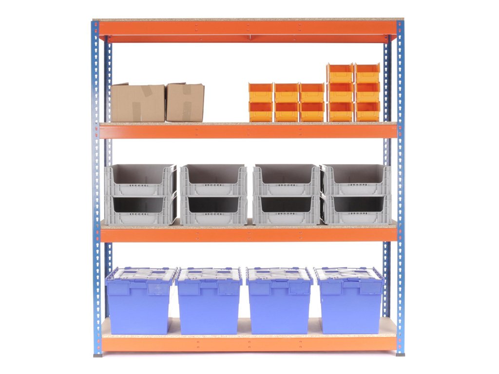 Regał 168x160x70 cm PROFESIONAL lakierowany 4-półkowy, nośność 1600 kg - NIEBIESKO-POMARAŃCZOWY